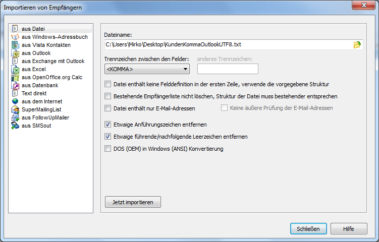 Import von E-Mail-Adressen